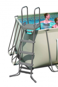 Удобная лестница для бассейна помогает с комфортом спускаться в воду и безопасно выходить обратно. Без лестницы не обойтись при установке каркасного бассейна. Ведь если надувной борт легко перешагнуть, то высота сборной модели зачастую превышает 1 м.