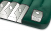 Надувной матрас со встроенным ножным насосом. Цвет зеленый. Флокированное покрытие не даёт соскальзывать белью, и в тоже время легко чистится. Клапан 2-в-1 позволяет надуть матрас также и внешним насосом.