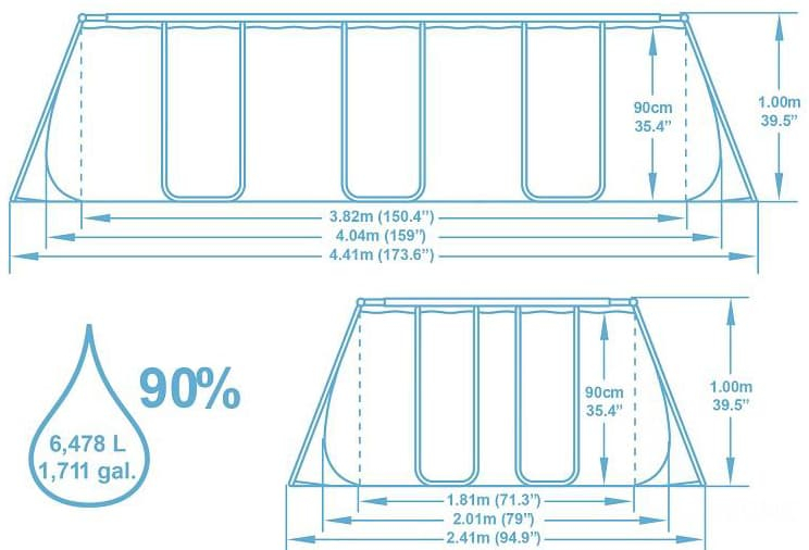 Отзывы к товару "Каркасный бассейн Bestway 56721 404х201х100 Rectangular Power Steel Frame":