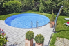 Бассейн может быть установлен на любой ровной поверхности или заглублен в землю. Бассейн устойчив к коррозии и низким температурам, что позволяет не сливать воду на зимний период. Монтаж не требует специальных инструментов и навыков.